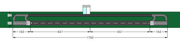 The runway is therefore built on a sand base and consists of a concrete layer of 190 mm and an asphalt cover 50 mm. The total construction that must be placed is 240 mm = 24.0 cm.