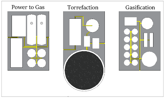 Power to gas is divided into two areas to use of the space on the island as best as possible. And those areas are also divided into 3 areas with P2G, Torrefaction & Gasification.